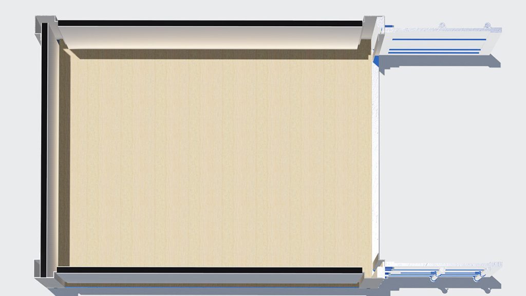 • Interior ceiling: Container metal.